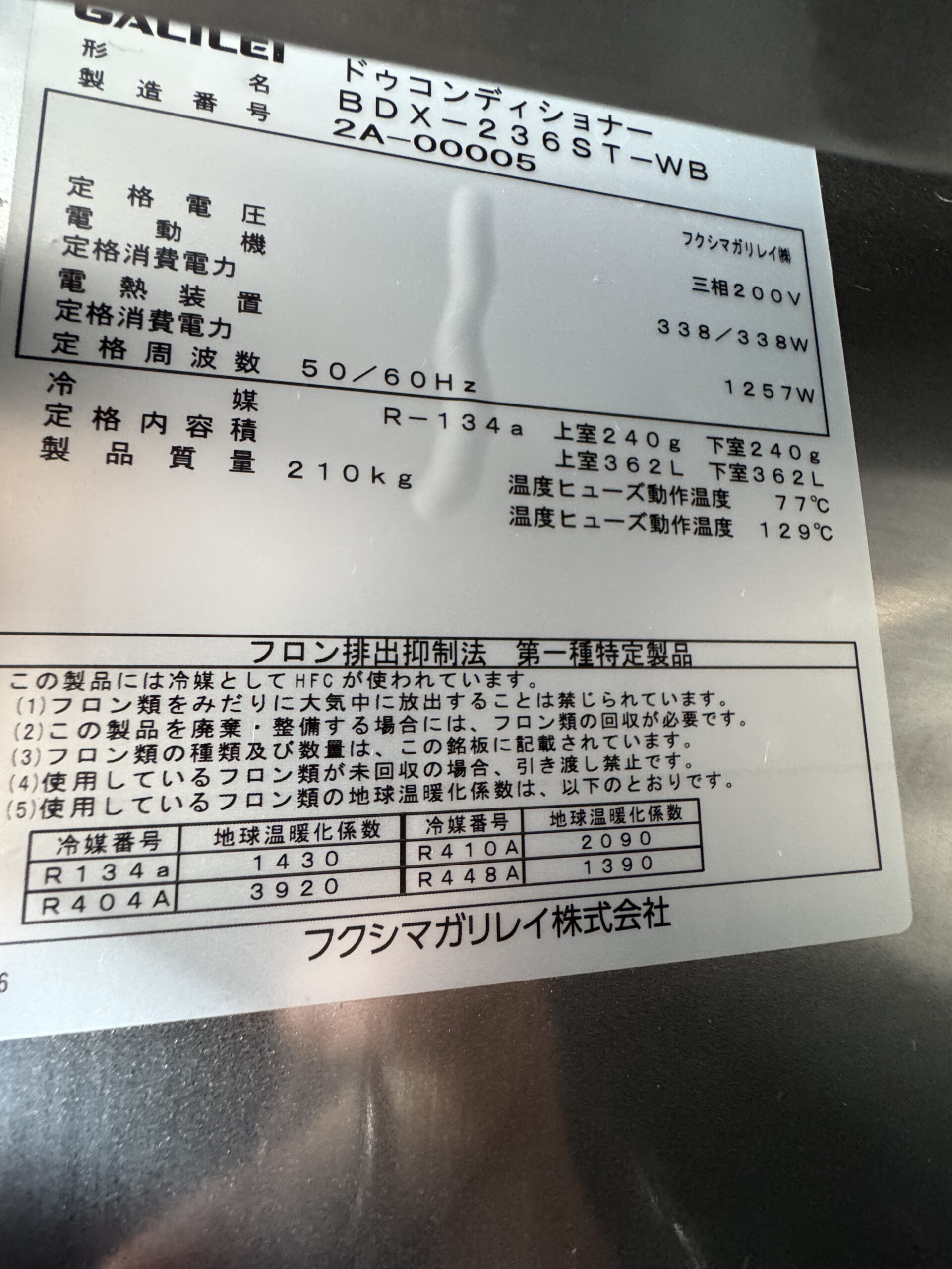 中古 ドゥコンディショナー フクシマガリレイ 3473